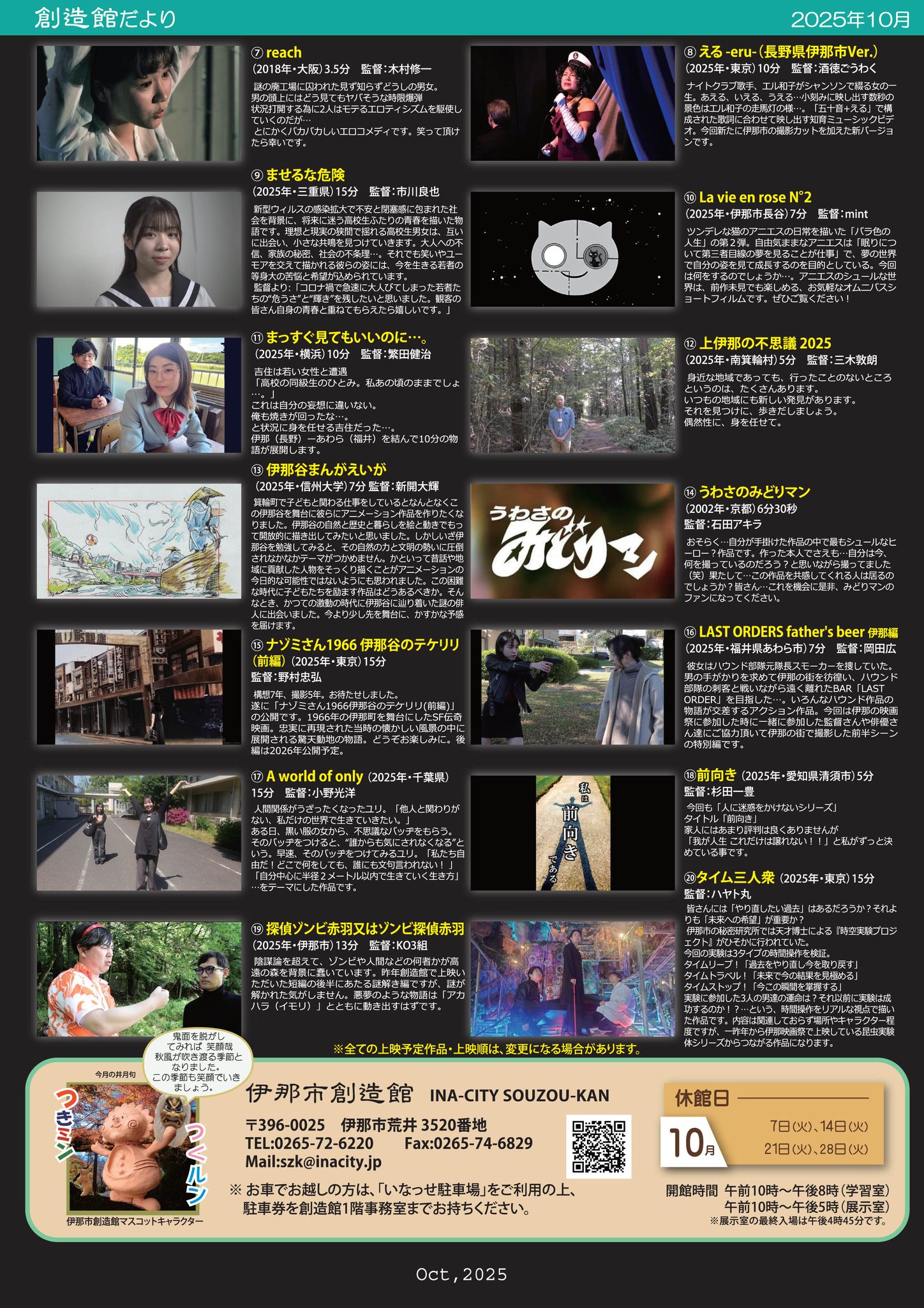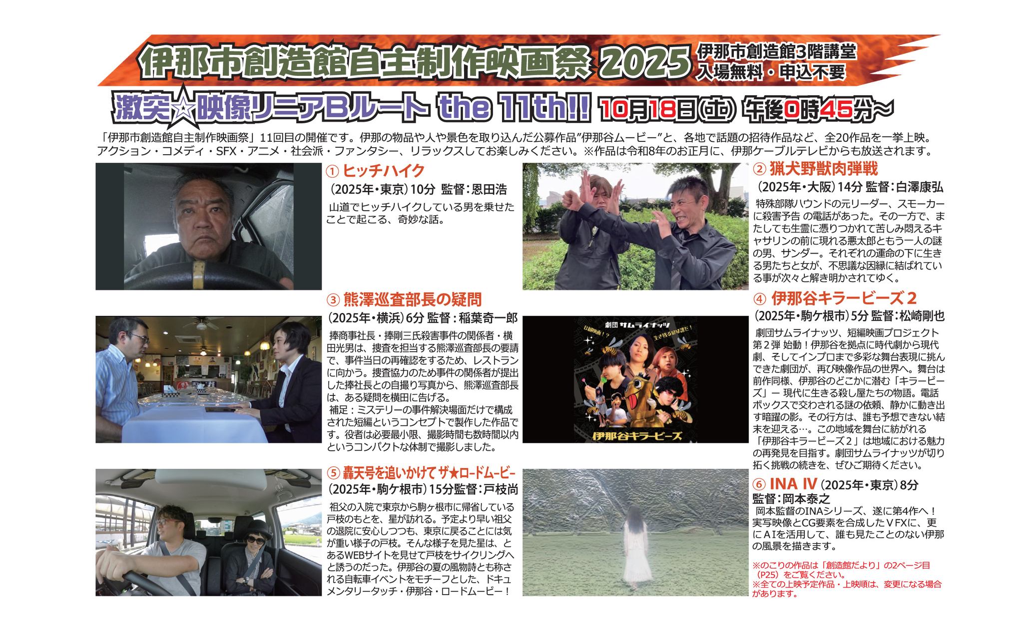 『伊那市創造館自主映 画祭 2025 激突☆映像リニアBルート the 11th』→ 終 了(御来場ありがとうございました)